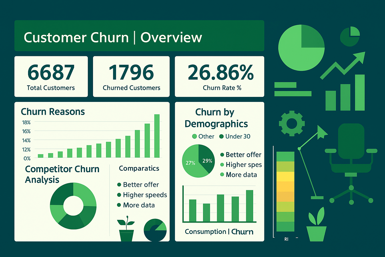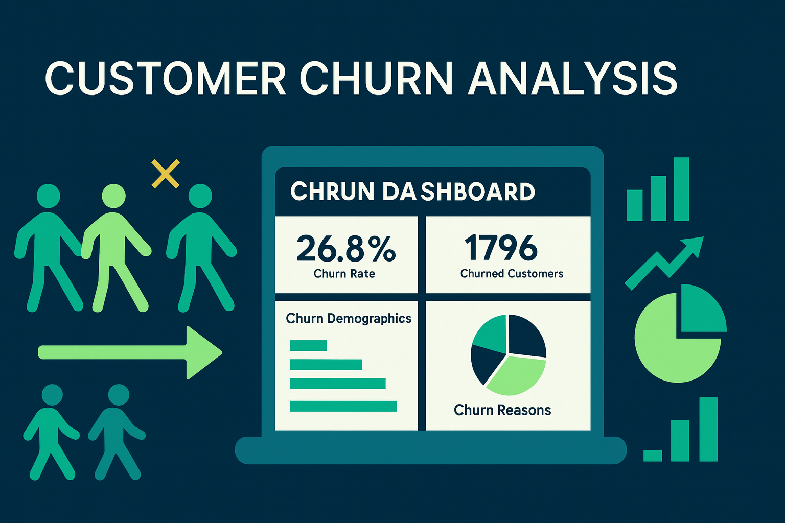 In this project I used Power BI to build an interactive dashboard analyzing customer churn data. It highlights KPIs such as overall churn rate, total churned customers, and customer demographics. The dashboard also explores churn reasons, contract types, and geographic patterns to help businesses understand customer behavior and improve retention strategies.
